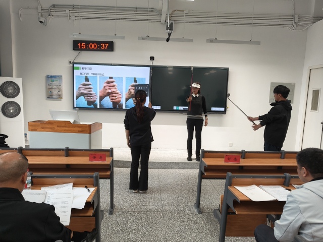 竞赛中,各位参赛教师各展所长、各具特色,将专业教学技巧与课程育人理念深度融合,呈现了多堂高质量的体育教学模拟课。技术课堂教学中,钟璧蔚老师主讲高尔夫技术理论与实践课程,聚焦上杆至顶点动态时序,详解身体与手臂动作要领、协调发力及科学训练方法,融入AI 数据驱动教学,实现挥杆轨迹数字化分析,助力高效掌握标准挥杆技能。宋晓婉老师围绕正手攻球技术展开教学,运用四步分解教学法,通过镜面示范让技术要点直观传递,针对学生腰腹协调性差、发力顺序混乱的问题,创新引导学生脱离球拍感知蹬转发力与挥拍轨迹,高效破解教学难点;夏建恒老师聚焦篮球破二三联防战术,将战术推演与个体落位相结合,通过战术板讲解、传球轮换练习等环节,辅以精细化落位图示,助力学生精准建构集体战术中的空间意识;黄锦瑞老师在橄榄球旋转球技术教学中,以标准示范和清晰分解讲解,将出手角度、手指拨球发力点等关键要点逐一呈现,让学生在直观感知中建立正确技术表象;余瑛老师进行高尔夫球准备姿势教学时,通过握杆手法演示、力度分级讲解等环节,配合关节角度标记与动作定像对比,实现学生准备姿势的规范统一。